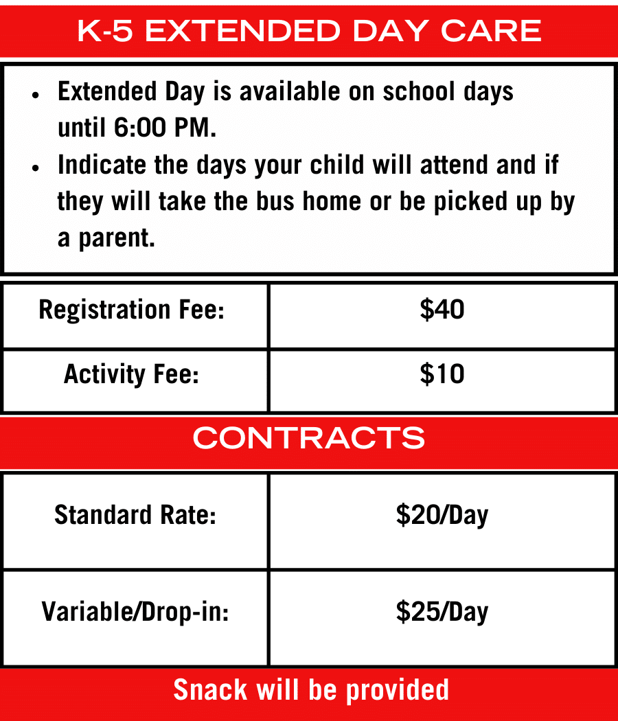 A $40 non-refundable per child registration fee and a $10 activity fee will be added to your first bill of the school year.